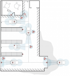 • Durchdringende Warnungen: Erkennung auch durch Wände und Regale.
